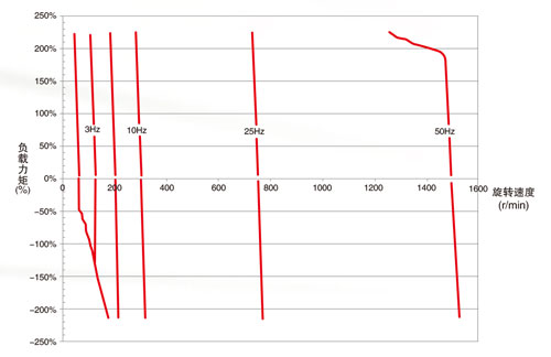 可以驅動無編碼器的普通電機實現高精度和高響應速度。在低速0.5Hz時,可以實現200%轉矩輸出(無傳感器矢量控制模式下)。