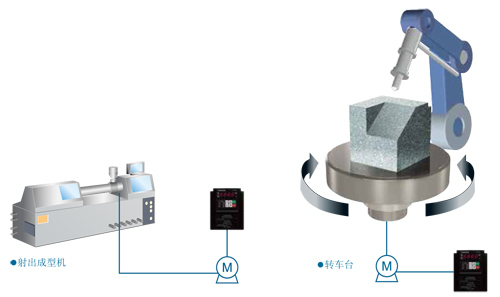 ·采用本公司的矢量控制技术,即使在中低速中也能产生较高的力矩(1Hz→150%)。在负载变动较大且需要充足的起动力矩的装置中,如载有大量半成品的传送带和重型转车台等,也可顺利运转。在同样需要低速力矩的罐头敛缝机、冲压机、射出成型机等的运转中也可发挥威力,无需使用放大1 个等级或者2 个等级以上容量的变频器,为降低成本和消减安装空间做出贡献。