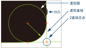 2該功能可求出2點間距離、2直線的交點、2直線的中線、垂線距離、虛擬橢圓等。通過同時使用智能邊緣(圓)/(線),可將對象物擬作幾何學圖形,無需編制運算公式,即可求出坐標、距離、尺寸、角度。