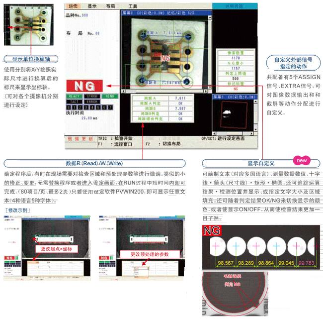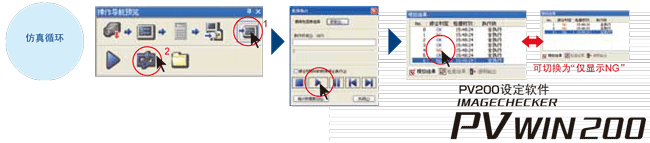 拖動目標圖像,放到PVWIN200畫面上后開始操作。利用向導視圖的圖標向導,可對檢查條件設定進行編制、變更。