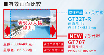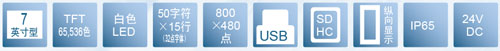 ●7英寸型、配备长寿命LED背光灯、彩色TFT65,536色液晶