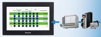 利用GTWIN内置的模板(部件库),只需拖放粘贴即可显示FP-XH位置控制的动作/停止状态,并进行确认。