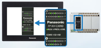 对于安装在控制柜内的FP-XH的工作指示灯,可通过可编程智能操作面板来查看。利用GTWIN内置的模板(部件库),只需拖放粘贴即可确认配线和动作。
