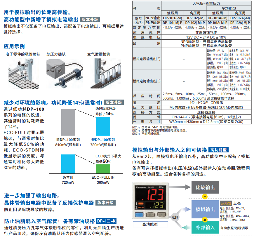 通过低功耗DP-100系列的电路的改进,其通常时的功耗降低了14%。