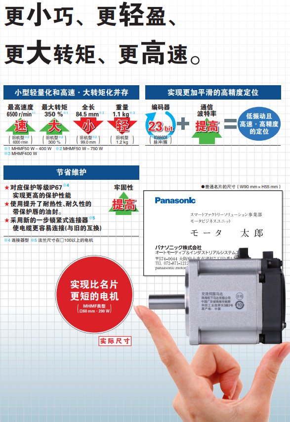 A6系列伺服电机 ?小型轻量化 ?超高速 ?大转矩 ?实现平滑的高精度定位 ?节省维护空间